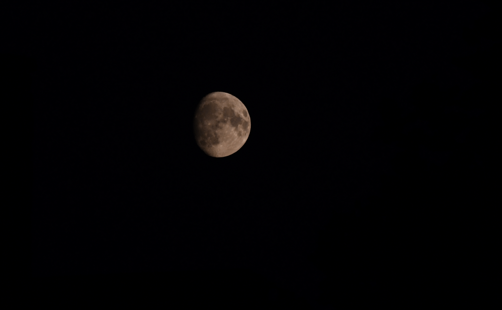Typically, the optimal camera settings depend on the day. It can change according to how light the sky is or how bright/dim the object being photographed is. For the photograph above, I used an exposure time of 1/100 seconds and ISO 800. I found that this gives me a good result, otherwise the Moon appeared too bright or dim.